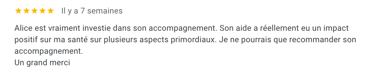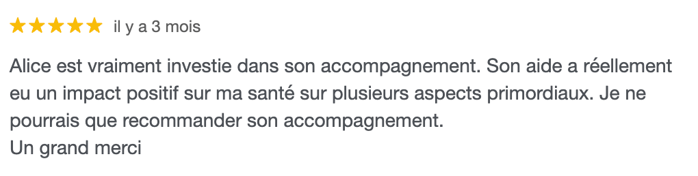 Je dirais le temps que vous jugez nécessaire pour installer des habitudes durables. Il y a bien sûr le temps des consultations, mais aussi tout le temps d’expérimentation, d’observation de vos habitudes …