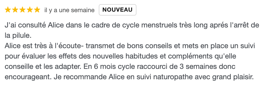 Cela dépendra des cas et des problématiques. Certaines clientes voient des améliorations dès le premier mois tandis que d’autres verront un mieux au bout de 3/4 mois. La prise en charge fonctionnelle demande de la patience, le corps se régule petit à petit et il ne faut pas se décourager.